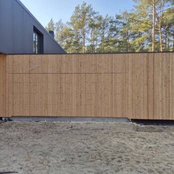 Przedstawiamy wyjątkową elewację wykonaną z desek modrzewiowych, które nadają budynkowi ciepły, naturalny charakter