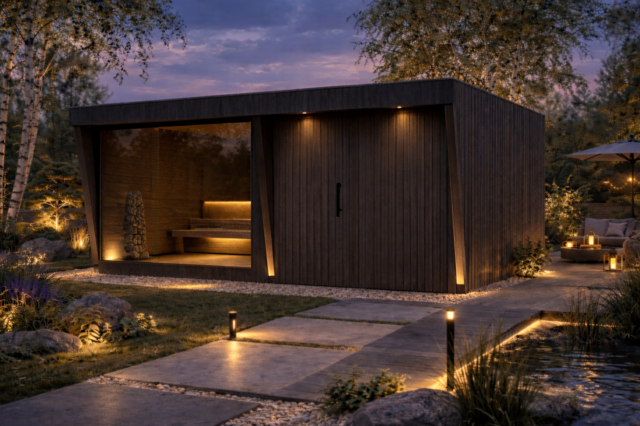 To designerska sauna ogrodowa, która podnosi prestiż całej nieruchomości.
